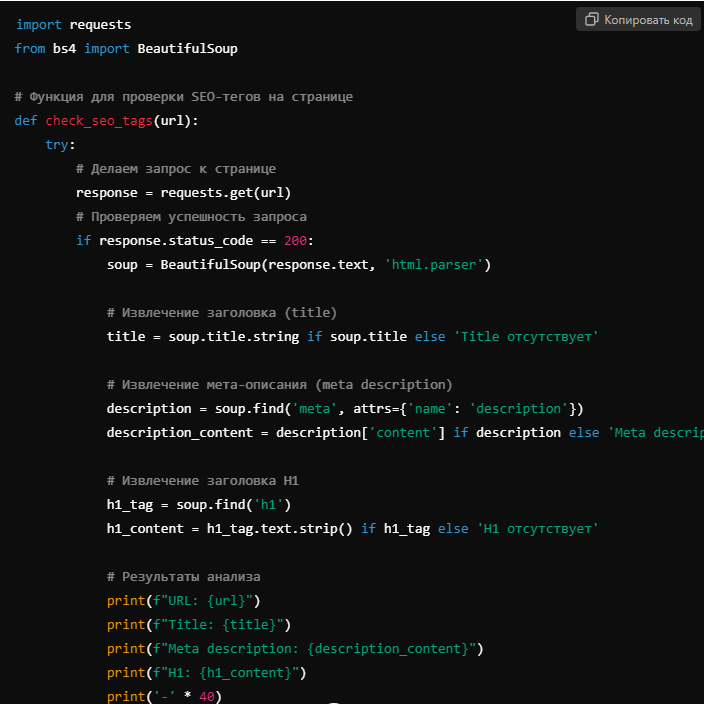 description_content = description['content'] if description else 'Meta description отсутствует'